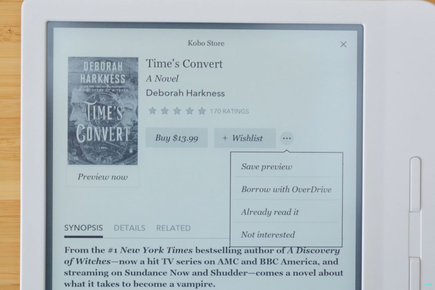 Od revize Formy se však nic nezměnilo – výchozí možností v nabídce Procházení přes Drive je zakoupení elektronické knihy od Kobo, a můžete si pouze půjčit nebo umístit knihu do držení klepnutí na tlačítko nabídky elipsy. Přejeme také synchronizované přání OverDrive vypíše a podrží informace ze zařízení na zařízení a platformy platforma (dívám se na tebe, Libby), protože by to vedlo k udržení jeden soudržný seznam čtení mnohem jednodušší.